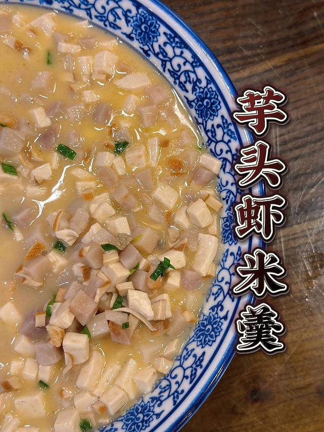 【芋头虾米羹】是由芋头、茶干、豆腐切成丁,加上虾米做成羹,配料很丰富,一口下去咸鲜软糯,这道菜是盐城人最爱的家常菜,也是盐城饭店里被点的最高的菜品之一。