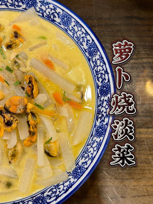 【萝卜烧淡菜】里的淡菜是盐城海边的一种海货,和萝卜在一起烧绝配,萝卜里渗入了满满的海鲜味,而且清淡又滋补。
