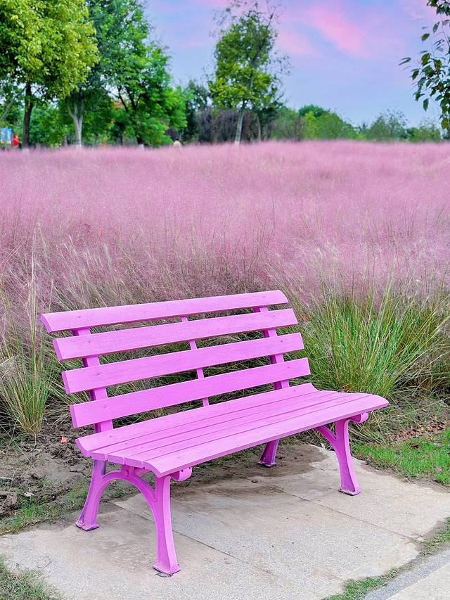“粉黛轻点胭脂红,似水一笑月朦胧”,大洋湾的【粉黛乱子草花海】今年也如期而至。粉黛的花语是“等待”,它开放的时候是漫山遍野的粉红色。从大洋湾南门进,进门左转之后一直走,经过一座桥大概10来分钟就能到。远看粉黛草,茫茫一片,似乎走不进去,但是走近一看就会看见蜿蜒的小路。两侧粉黛草盛放,大大小小的,轻松就能拍出粉色海洋的感觉。路边的小座位也很上镜,微风吹来,粉黛乱子草开始随风轻轻摆动。空气中的浪漫因子交叠碰撞,这是独属于秋日的浪漫气息。