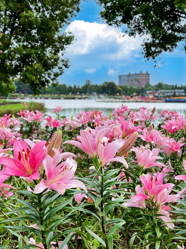 9月、10月的中秋国庆假期前后刚好是百合花季,满园都是各色百合淡雅的花香。循着花香,走到公园深处,日岛、月岛是花开得最多的地方,成片成片的百合花争相绽放,拿起手机在草坪边放大两倍或者蹲下拍照都很好看。
