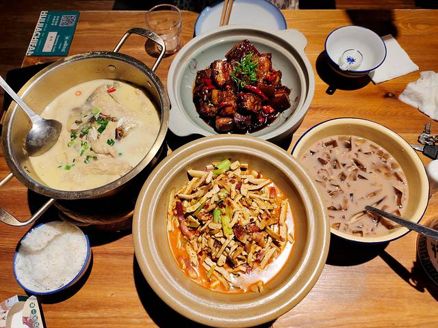 晚上我跟小姐姐又去了陶阳新村买买买!没有一个人能空着手走出景德镇。这里的瓷器价格比乐天市集和陶溪川夜市的便宜,小花瓶几块钱一个,还有很多其它小玩意儿。晚餐在回家吃饭解决,这次点的菜我们俩都不喜欢,除了鱼头汤……