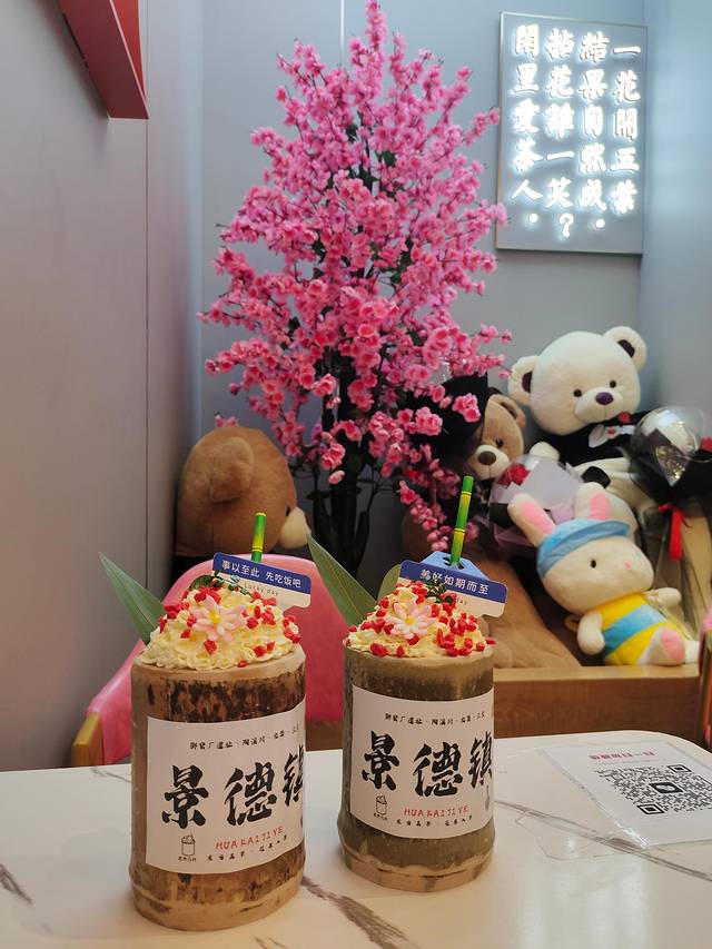 从三宝村回来时绕路去买了奶茶,店名:花开几叶