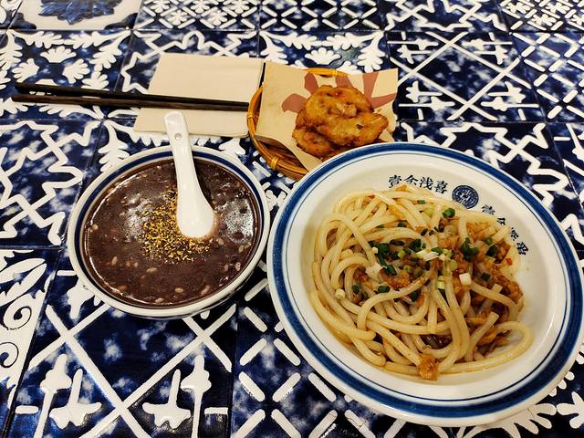 我到景德镇时已经是晚上了,住在雕塑瓷厂,去附近的一碗粉吃了冷粉和花香酒酿,然后休息。这里的辣椒比较辣,我感觉自己是挺能吃辣的人,也被辣到流鼻涕了。花香酒酿我觉得热的比较好吃。