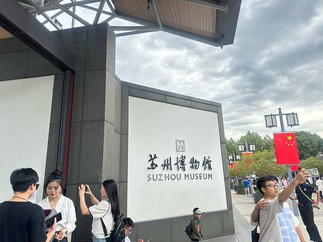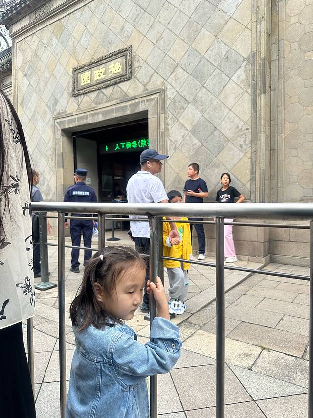 小家伙早上不到6点就醒了,还在发烧,吃药后在酒店早餐,打车先去苏州博物馆,本来的计划是苏博-拙政园-狮子林-平江路。整个行程都很近,不怕堵车步行就可以了。结果到了苏博才发现自己预约的是苏州博物馆西馆,距离本馆10公里。来之前做了攻略知道不好预约所以提前7天就约了,没想到还约错了,重新预约的话要排到7号才有票