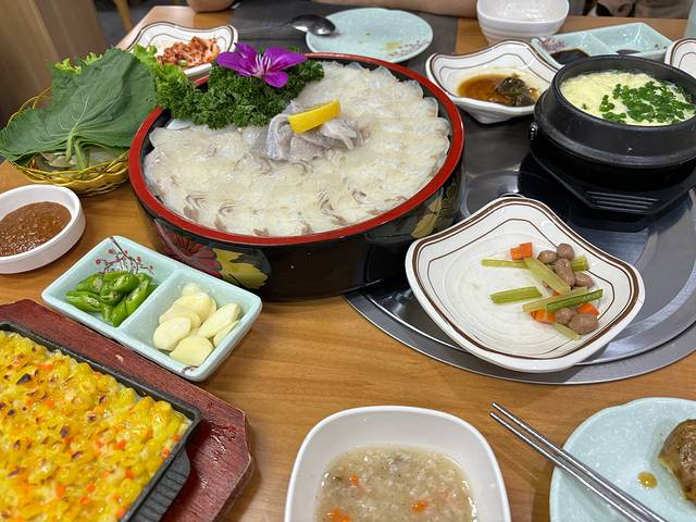 饭点真的每一家都拍好多人 我们选了一家烤肉 排了快俩小时才进去 服务挺好 小菜 南瓜粥 生菜可以无限续 还可以服务员帮烤 服务和味道都不错