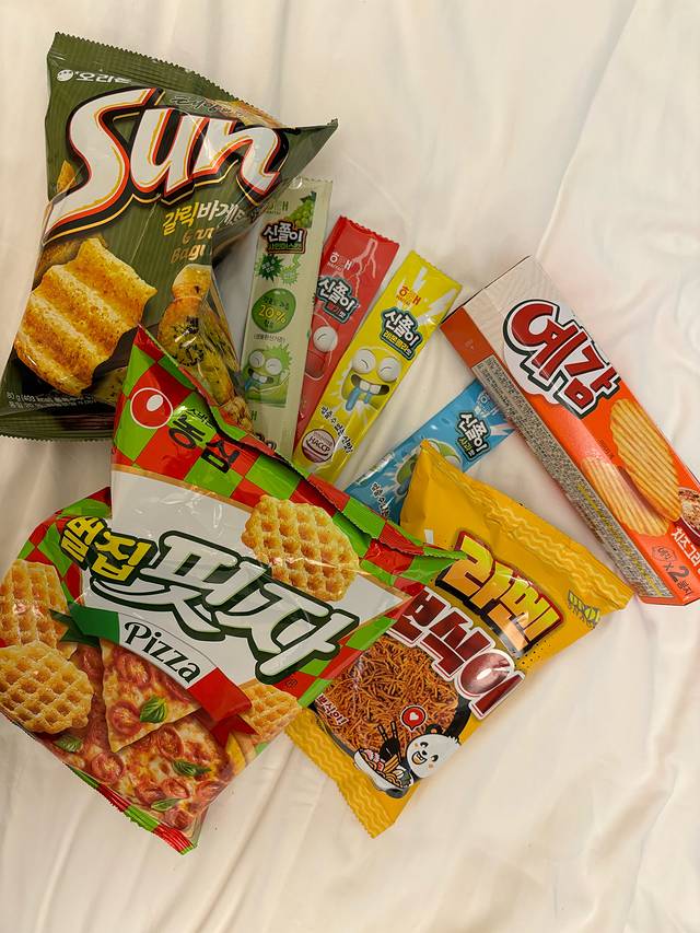 目前就吃了那个披萨零食和酸酸的糖果。还不错