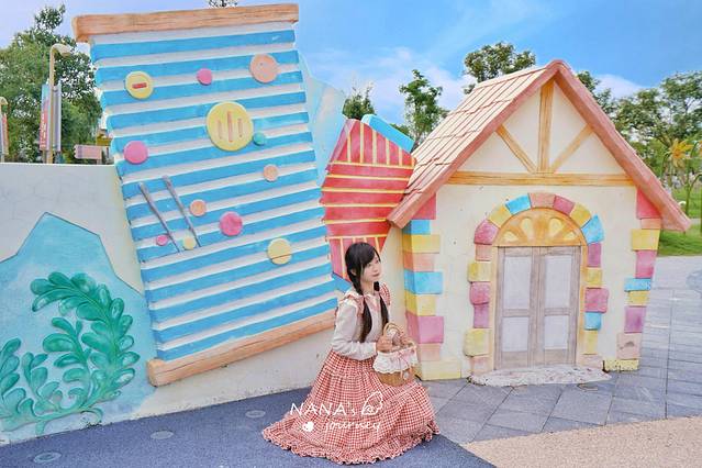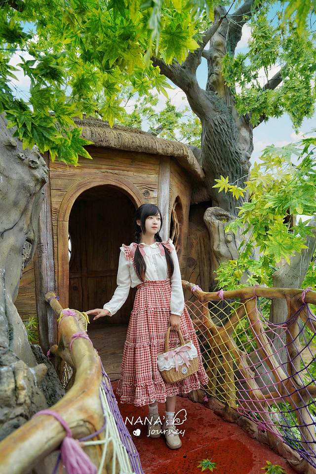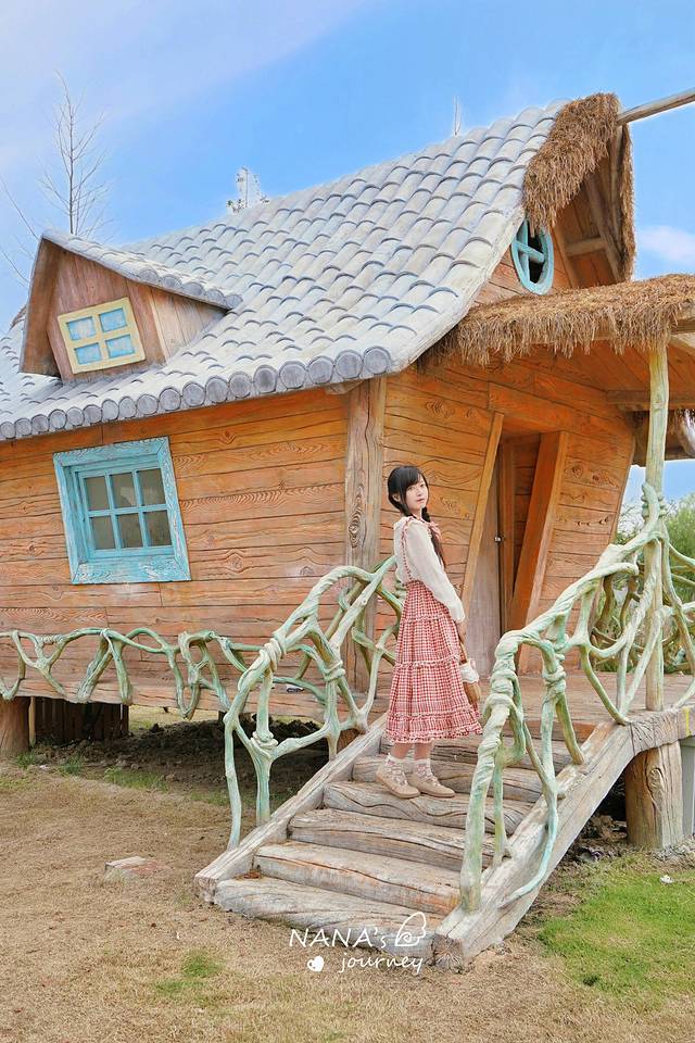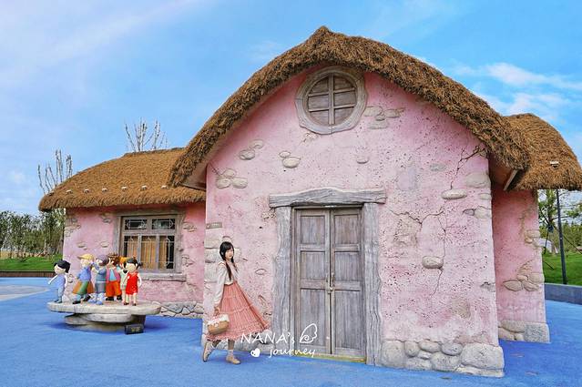 好了,我们要开始可可爱爱的拍摄之旅了~草房子乐园里有太多可爱又好拍的场景啦~这么马卡龙童话色彩的小房子,这次是菊花娃娃的家,我们来做客啦~
