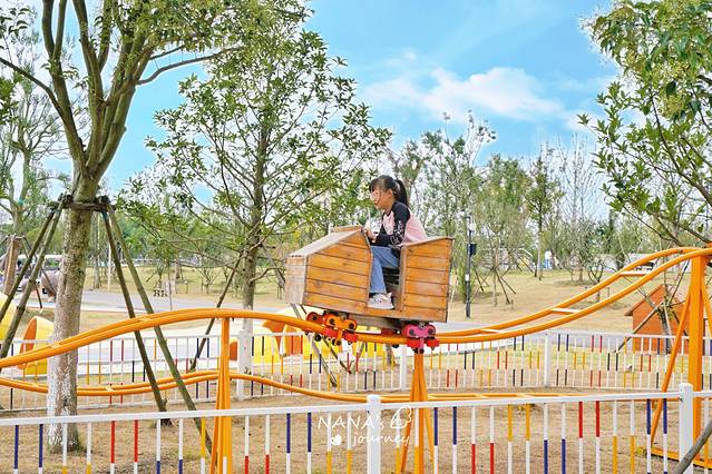比较刺激的有这种人踩脚踏车动力过山车,需要爸爸来努力踩动脚踏车让小过山车车厢达到顶峰,然后biu~就完成了一次过山车的体验。