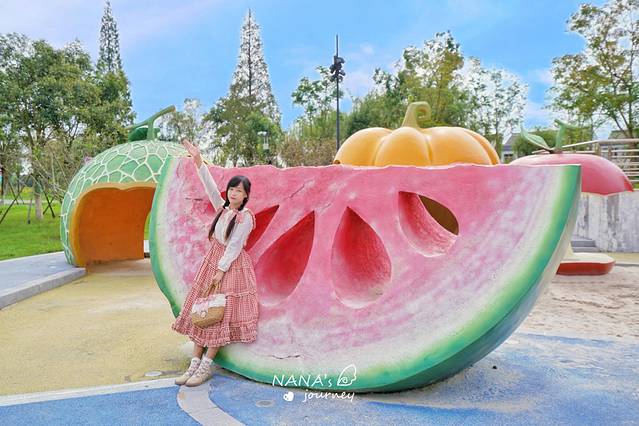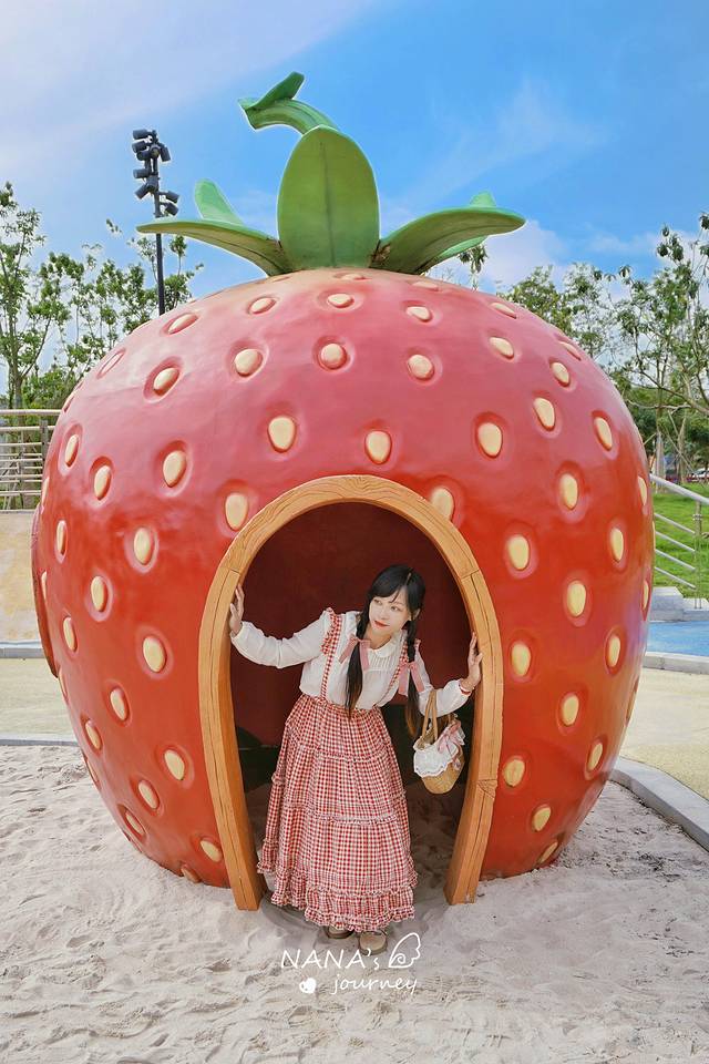 充满少女心的巨果乐园来啦,这里主要玩点是沙子,不过水果们都太可爱啦,合照几张也不为过吧~各种可爱的水果还能钻一下,发挥创意开始合照吧~