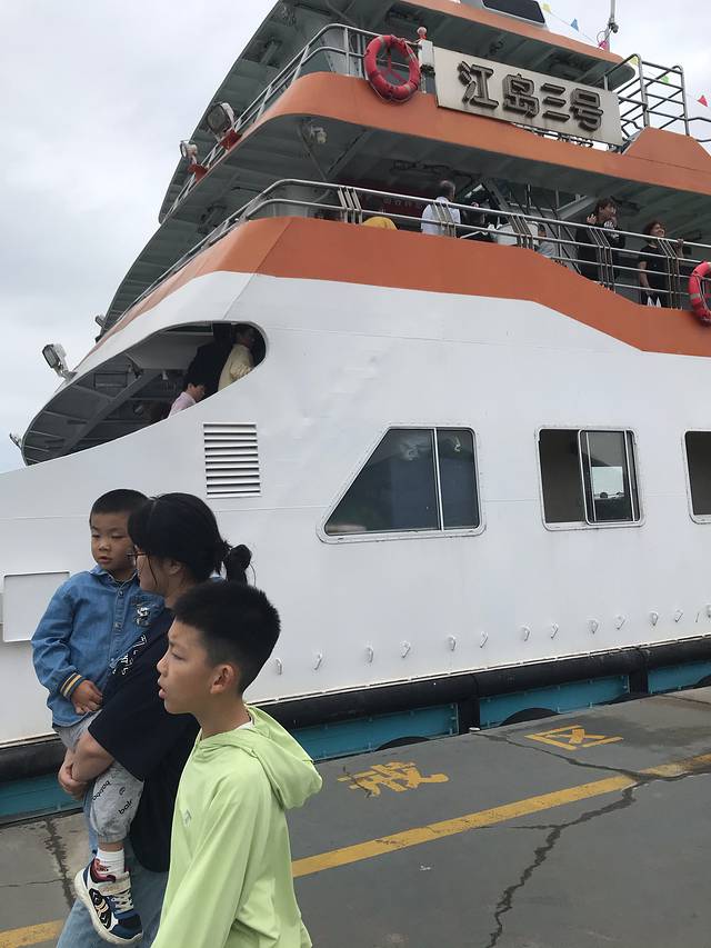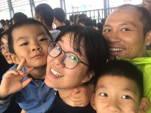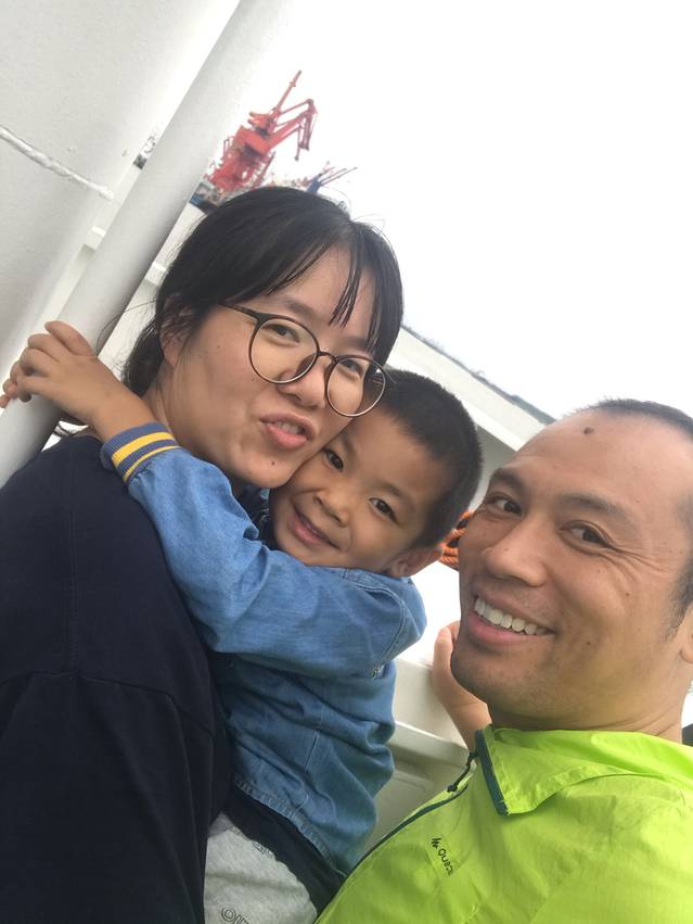 轮渡排队时全家合影