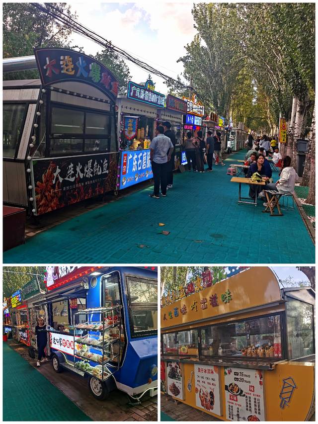 靠近公园入口处两侧是一排排的小吃车,估计晚上就会开始营业,餐品种类比较多,价格适中 。