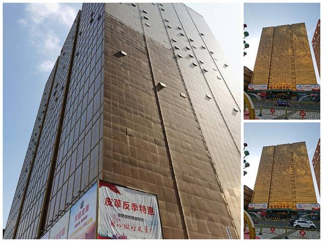 早上路过时候看到的金灿灿的建筑,仔细一看是皮草城。这造型看着就应该不会有假货。