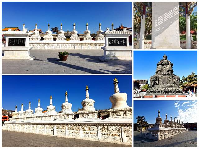 大殿前的碑亭正在修缮,据说应该是评定噶尔丹功绩碑。汉白玉佛塔,高15m,里面还镶嵌着很多琉璃宝石,有很多小姐姐在这里拍照。
