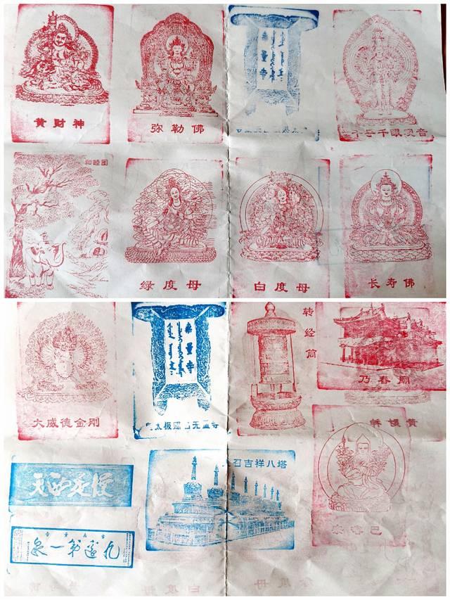 家人们谁懂啊,我居然在里面看到了印章!!!第一次是在菩提过殿左侧看到的,然后问了一下里面的师傅是否可以盖章,答案是可以的,然后果断翻包,可惜我的盖章本盖满了,只能盖在了空白的A4纸上,虽然比较仓促,之后又在后续的殿内发现了若干,不知道是否盖全了。来的时候再次路过路口两侧店铺,外观了一下,主要都是香火、贡品,好像没有看到卖本子的,需要盖章的小伙伴一定记得提前准备!!!