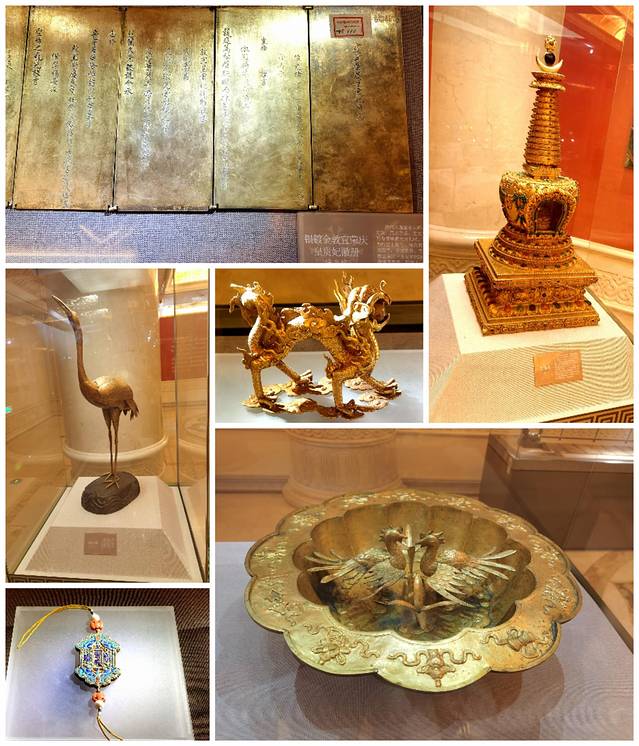 临展目前是故宫展品的借展,主要介绍皇家的婚庆礼仪等等,展品多为金光闪闪或者吉祥寓意,很值得看看。