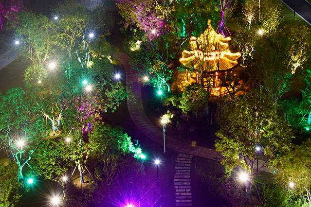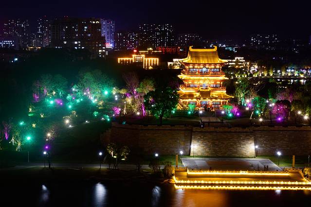 第一天(10月2日),我们为了避开高速的车流高峰,吃完中饭就出发去麻城接糠宝的姥姥、姥爷,然后从麻城上大广高速转沪武高速再转济广高速,然后到达潜山市(一般登天柱山都会到山脚下的潜山市中转或休整一下)。虽然高速上没怎么堵车,但是也有略微行驶缓慢的地方,所以到达我提前预定的潜山天仙配精品酒店也到了下午五点多,吃完晚饭,我安排岳父、岳母还有糠宝和“室友”先回房休息了,毕竟明天都要早起去爬山了(这里大家是不是想到了秦昊带岳父、岳母去爬山的梗呀,毕竟我还有希望嘛,所以~~~~~~呵呵~~~~~~)。当然我是一个精力充沛的人,所以晚上又估摸到潜山市雪湖公园去转悠了一下,拍拍夜景。