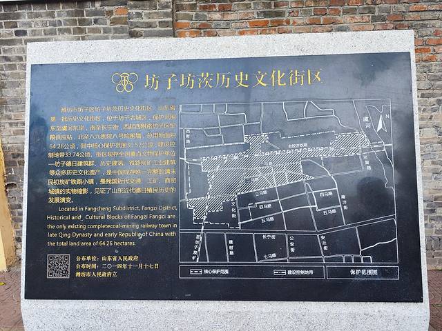 建筑以原胶济铁路坊子段为中轴线两侧发展,当地曾经是德国和日本的殖民地,“坊茨”是德语对“坊子”的音译,是谐音,“坊茨”二字见证了“殖民地统治”的历史,为了尊重历史,现仍叫“坊茨小镇”。