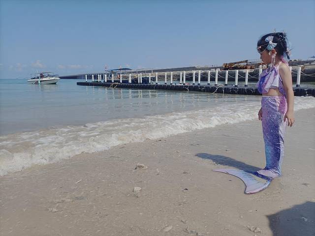 带娃的一定多带套衣服去海边,因为玩起来必定湿身,娃第一次见到大海很开心,水很清澈,有很多贝壳、寄居蟹、珊瑚可捡。真就是为了抓住日本核污入海的尾巴让娃看一下大海。租电动车50元半天,80元一天,每辆押金200元。观光车50元一趟,只负责送到景区。