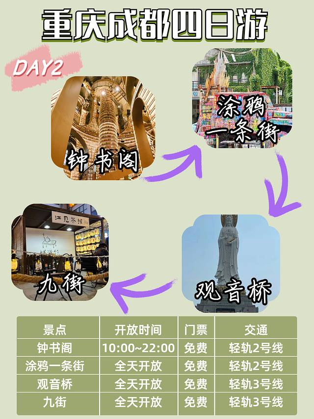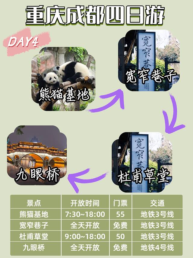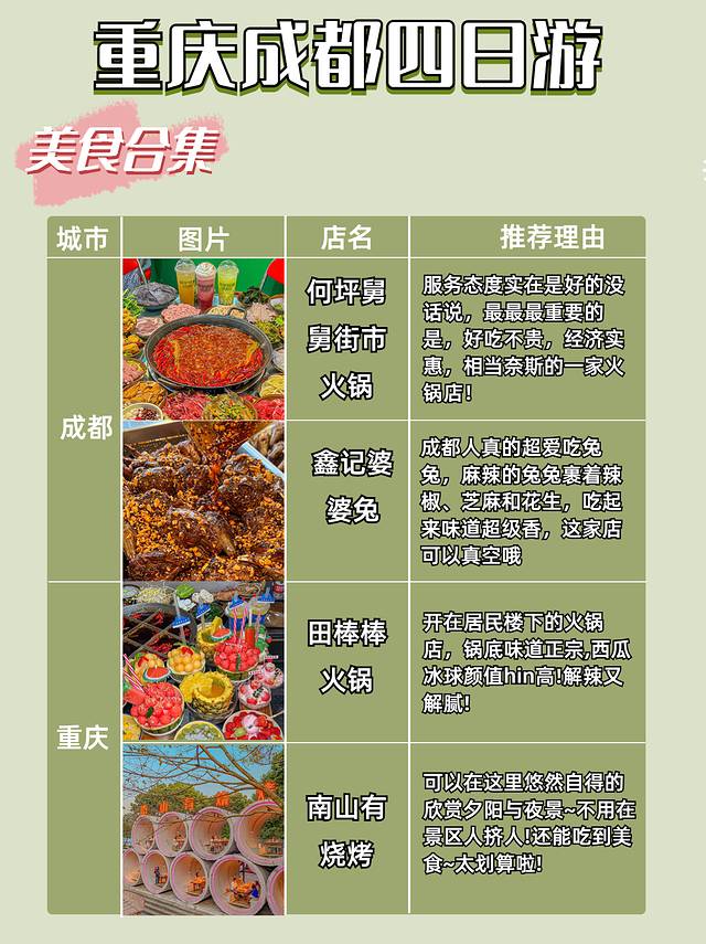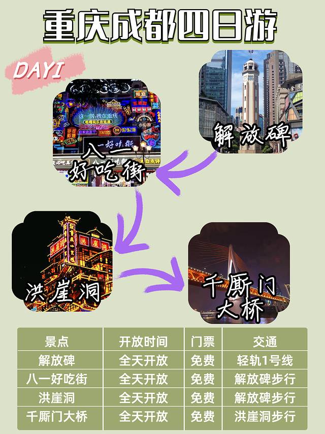 今天给又想来重庆又想去成都耍的朋友整理了【重庆&成都】的四日游不动脑筋旅游~