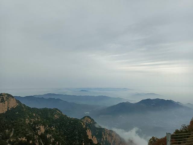 从十八盘开始走到升仙坊再到南天门,我都很喜欢不时地回头望,随着海拨的升高,云海也越来越美。只是可惜,那天是阴天,从爬山的角度来说是很友好的,不晒,从看景的角度来说,可能差强人意一些。