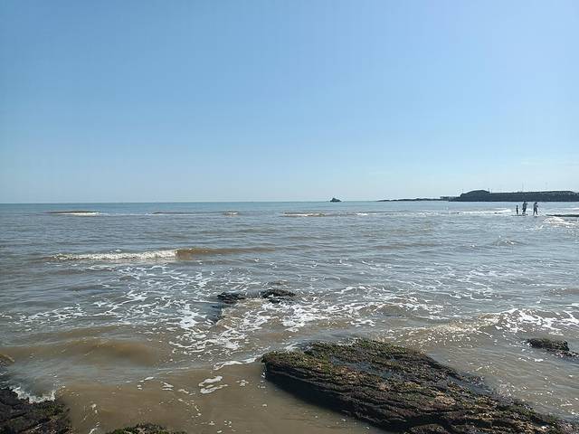 一定要提前一天看好涨潮和退潮的时间。要在最低潮的时间前一个多小时到,是最好的,就可以看到潮水一点点退下去,礁石一点点露出来。我们蹲守在潮水面前,跟着它退却的幅度一点点向前走,就好像是我们在赶它走一样,这就是赶海。拿着工具的我们和当地渔民,慢慢地在水里摸,在礁石上敲,可以得到小生蚝、海螺等叫不出名字的动物们,很是考验眼力。海滩上好多来玩的家庭,一会儿听到这边喊,“看,螃蟹”,一会儿听到那边喊“妈妈,拿桶来”,仿佛都是大丰收一样。围拢过去,不过一只小小的螃蟹或者海螺,连塞牙缝都不够,然后围拢的人群又马上散去了,投入到自己搜寻当中。
