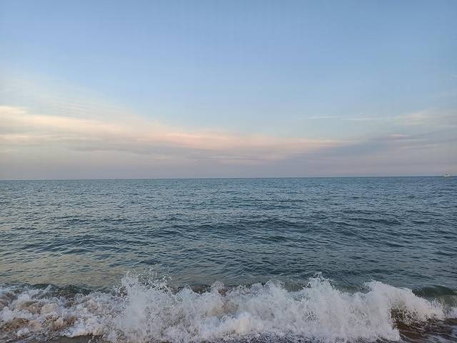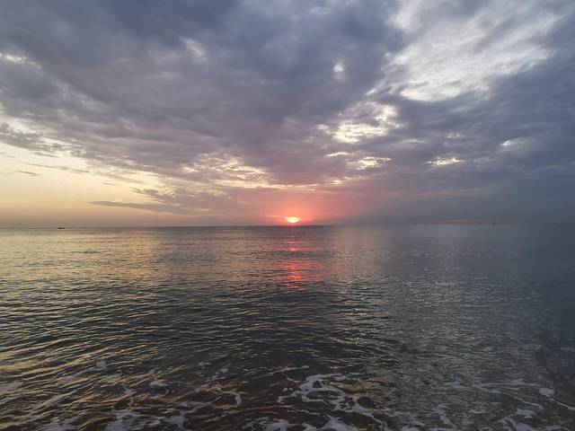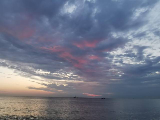 早上我和女儿起了个大早,约好一起看日出。女儿也兴致勃勃,这是她人生中第一次看日出,还是在海上,实在是难得的体验。可惜云层太厚,太阳实在透不出来,但是早晨的海风拂过脸庞,马上让人清醒过来,看早出的渔船点缀了无边的海面,听涨潮的海浪声,这场景也让人心喜。