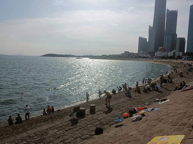 沿海又继续走,看青岛大爷海里游泳。我们沿途看到自己玩帆船的,还老是翻船,还好离得远,不然听到我们的笑声就太不好意思了。
