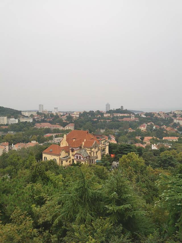 正好在这里解决了午饭,坐地铁去到了青岛的中山公园,可以在这个旋转观景台上看到青岛全景。10块钱的门票,实在很值。在这里就能理解青岛的美,红瓦绿树,可惜天公不作美,看到碧海蓝天辉映。不过,也够了。在这里可以看得到各个著名景点的位置。
