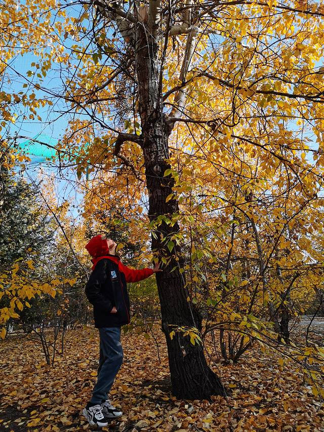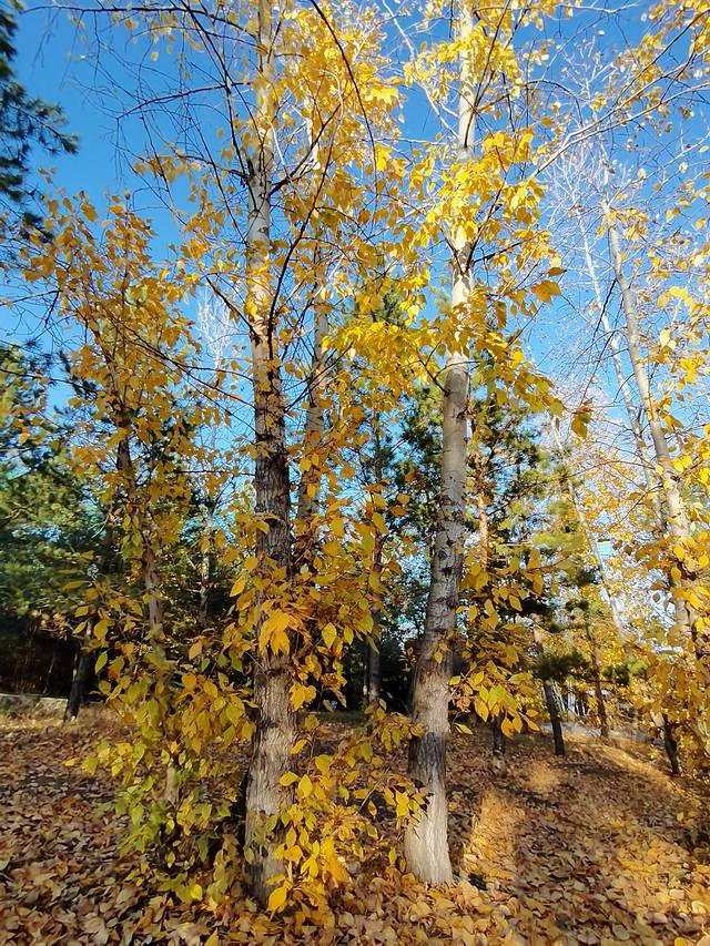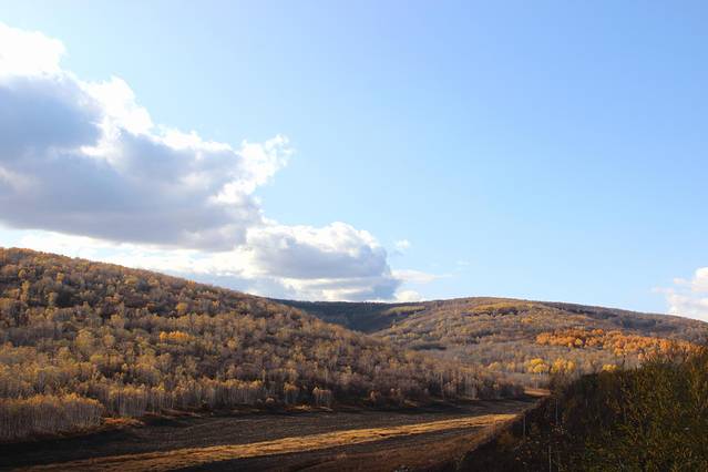 去的路上,阳光照耀在两边的金色树林,心情也很灿烂啊。据说今年冷得晚,白桦叶子还没咋掉,正是赏秋的好时候。