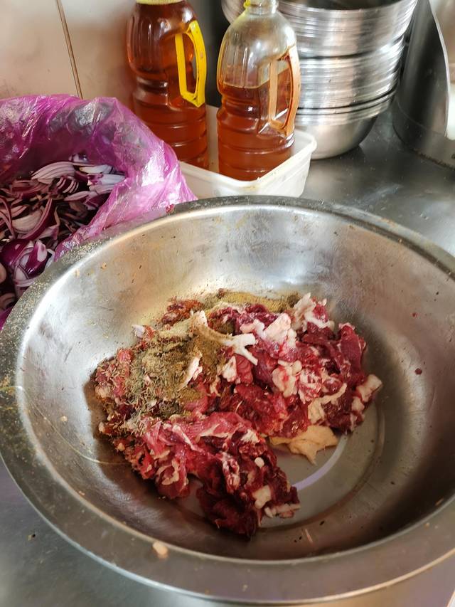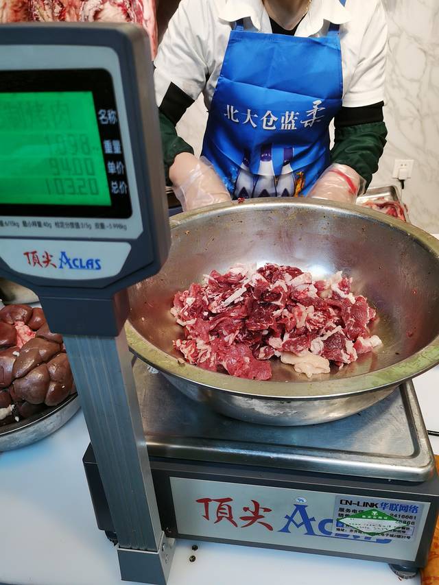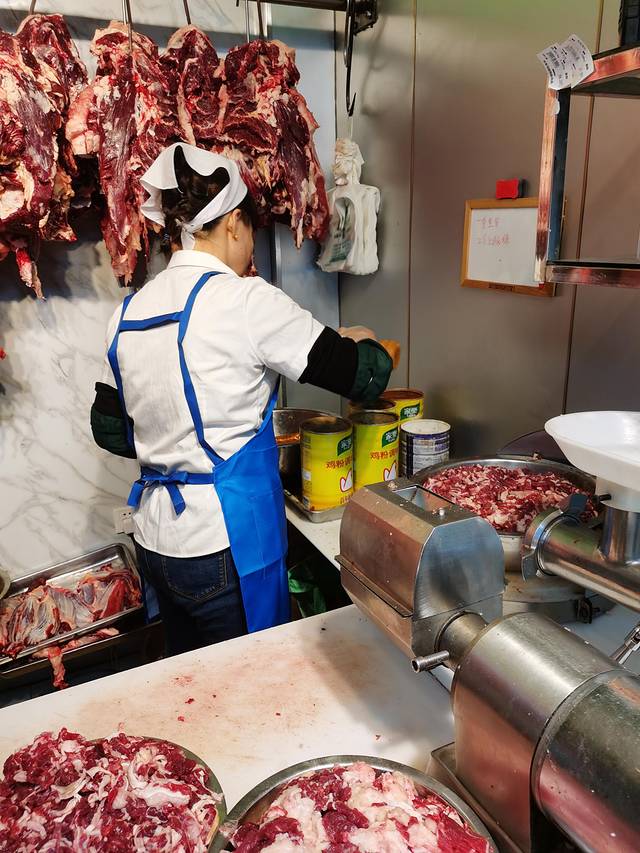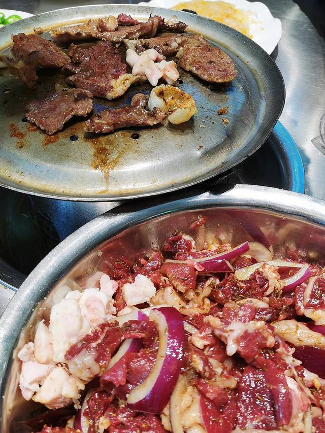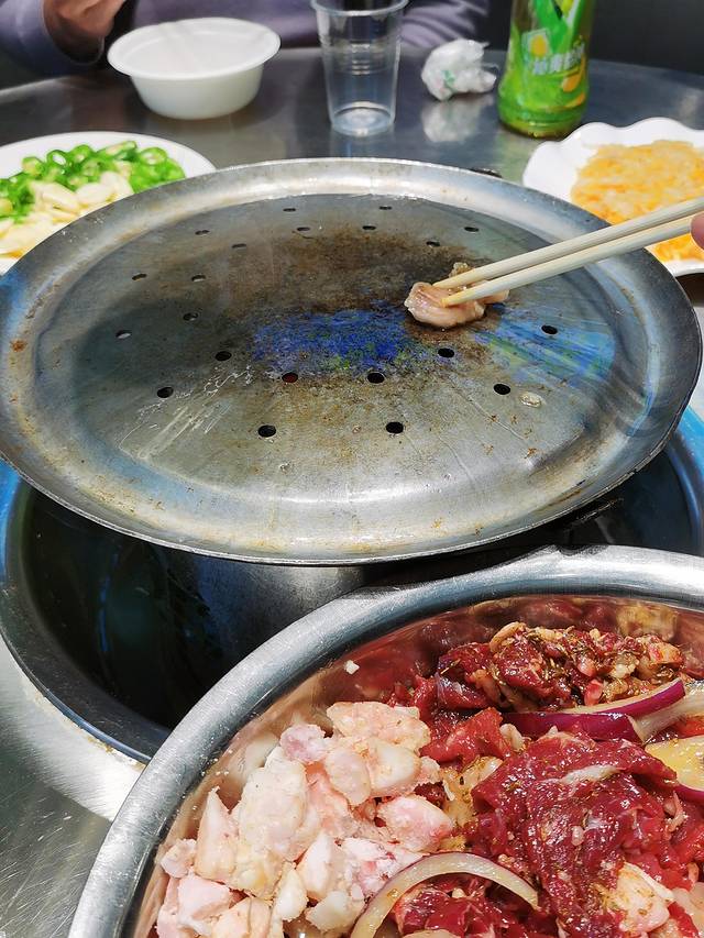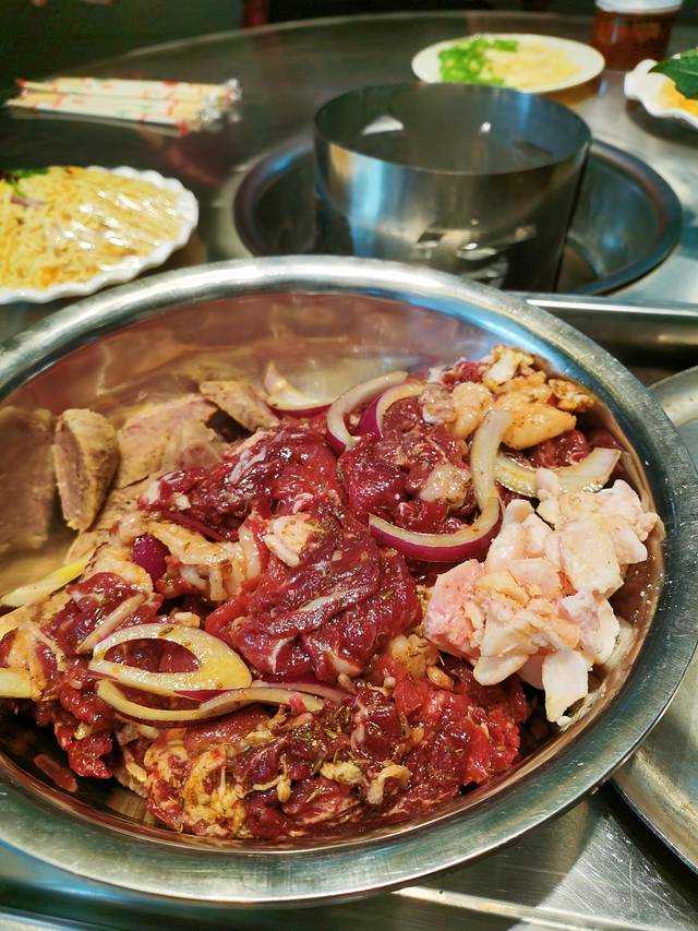 他家是正宗的齐齐哈尔烤肉,卖肉+烤肉。买肉的话,能买生肉块或现拌好的鲜切肉,顺丰包邮。吃烤肉的话,先上店里称肉,店员会先问几个人,直接建议几斤家庭拌肉(里脊、上脑、胸口、板筋都有,随意混搭),可加选牛肉肠称重。