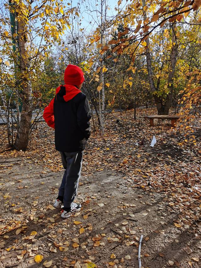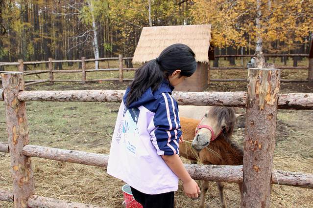 孩子们觉得喂鸟有意思。里面有些白桦树,照相好看。