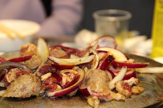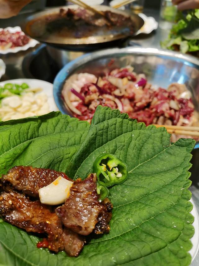 端着去旁边的屋坐下就开烤。没想到一进屋,居然还有比我们更早的,一楼大堂都快坐满了。