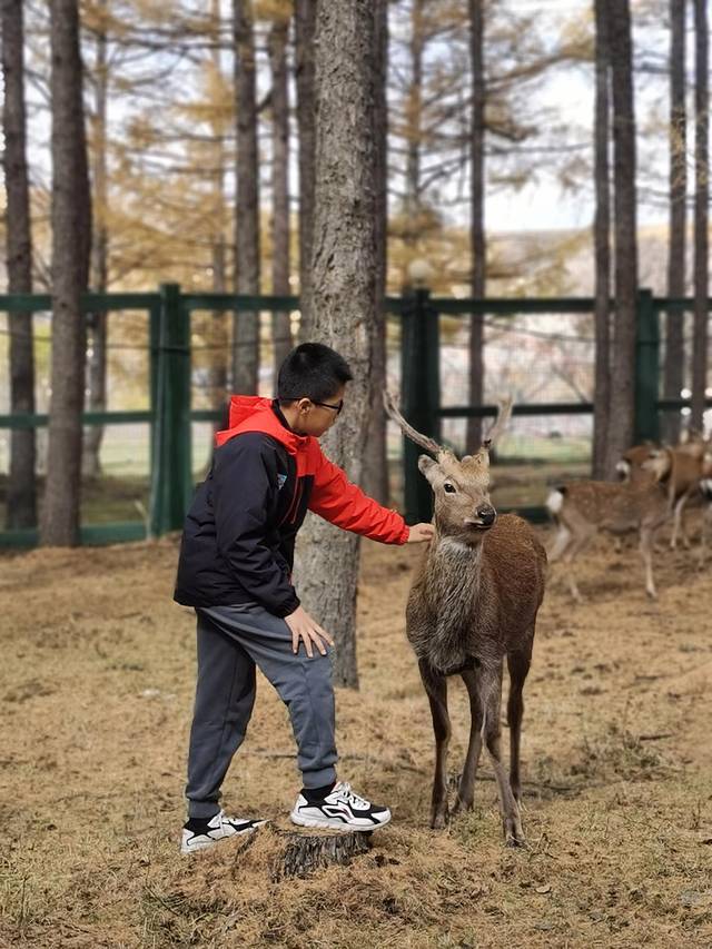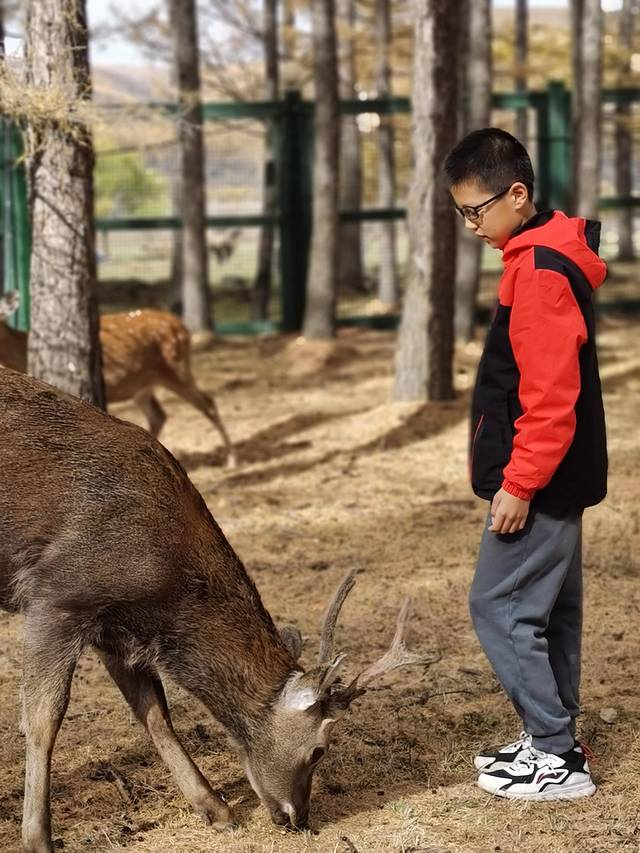 早餐也不错,得到大家一到好评。吃完早饭,带哥哥一起,又去喂鹿啦。