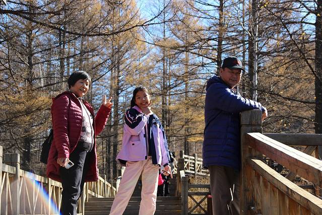 据说是中国唯一以樟子松为主题的国家级森林公园。西园以湿地为主,这个季节草已枯黄。北园门票30元,本地人免票,儿童1.2米以上半价,60岁以上老人免票。可以扫码骑双人自行车或四人自行车先到鸟语林。