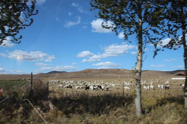 一进内蒙景色就不一样了,开阔,阳光明媚,蓝天白云。