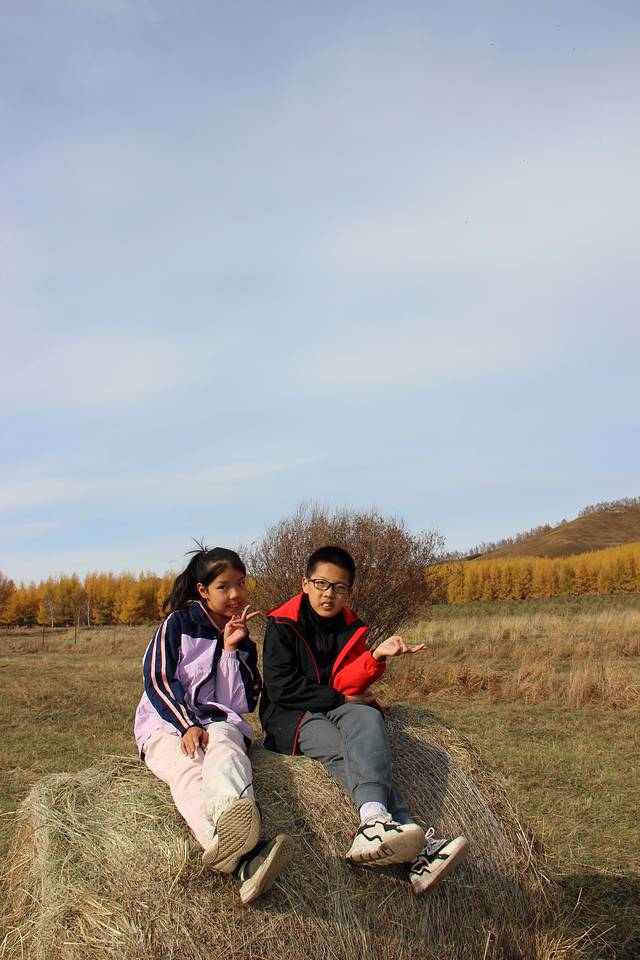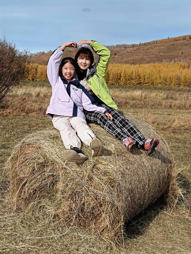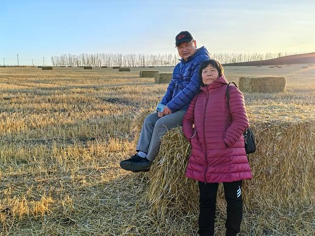 天也凉了,越往北越冷,连俄餐厅老板都说要第二天回阿尔山,等来年再营业了。顾问团就往南返程了。去海拉尔的路上,几个老头老太还挺嗨,腿脚不便又不爱照相的老爹居然上了麦垛拍照(涨知识了,圆形的是草垛,方块的是麦垛)。