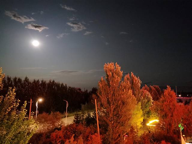 本以为多云赏不了月,吃完饭云散月明,又去遛了一圈。