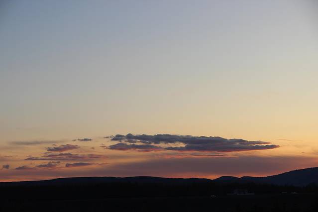 原计划赶到不冻河拍日落,据说霞光洒落在河岸两边的树林上会很美。可等车的人实在太多,怕挤着老人我们多等了一班又间隔太长时间。到天池后我紧赶着一路小跑,也只看着到了落日,没拍着霞光下的不冻河,留了点遗憾。