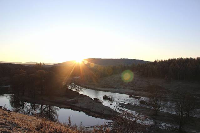 说实话,站在河边看也就一般,也许白狼峰的日出会好看些。看过好些日出了,印象中最美的还是在雾灵山,可惜现在自然保护区关闭了。