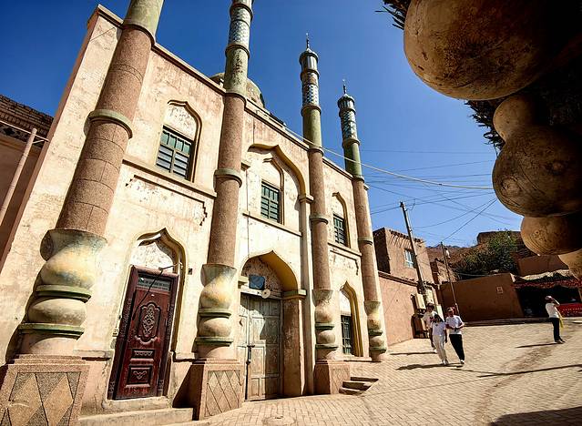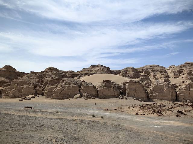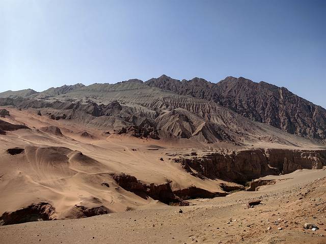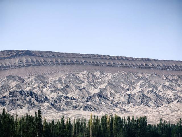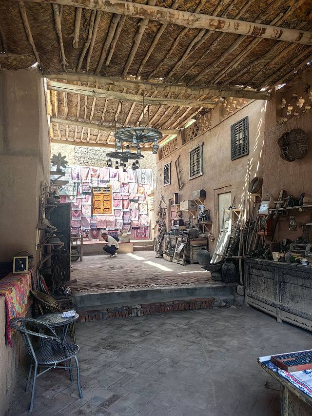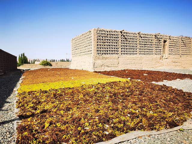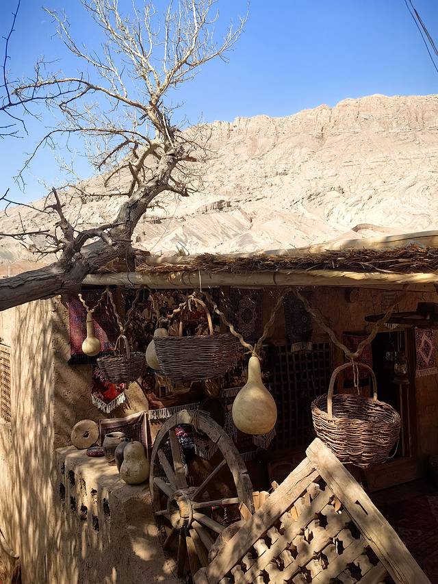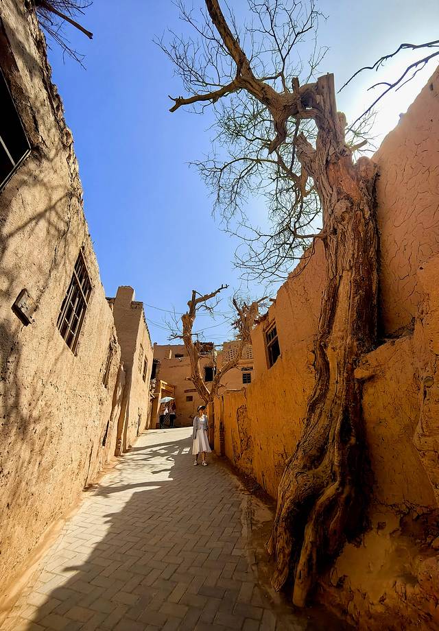 在从鄯善县到达村落前,有几个点。连绵巍峨线条明显的山峰很美;快到麻扎村前的最后一个观景台,靠边停车能远眺到千佛洞,但我们用望远镜看了,洞里应该是没什么佛像了,这里也能看到麻扎村的全貌,所以要不要花钱入村自行决定;在景区入口前的一段路,家家户户也有明显维吾尔族特色的花门,可以拍照。