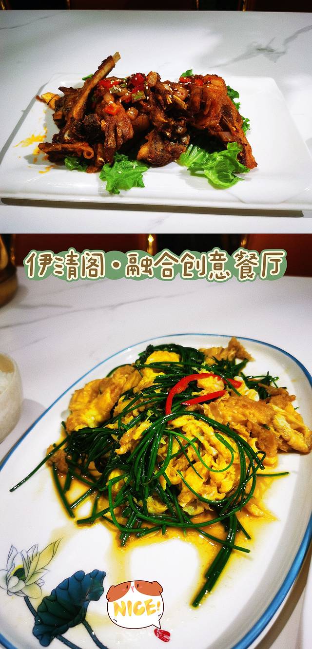 🍚晚上8点到张掖,伊清阁·融合创意餐厅走起,孜然羊肉和沙葱炒蛋都很好吃,2个人126吃好撑,结账还送了一袋虾片,良心商家,值得推荐。接着逛了甘州巷子,感觉和昨天的夜市差不多还略小。