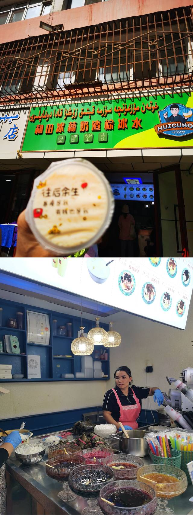 先去了和田二街,在街边首先来了一瓶鲜榨石榴汁(30元),吃了喀什烤包子(4元/个),吃了烤包子隔壁的囊超好吃(5元/个),勇敢尝试了艾莎面肺子(20元小份),比想象中要好一些,来都来了可以尝试一下,吃了大眼睛烧烤,味道很鲜不用放很多调味料,价格也不贵,吃了奶面包(12元),吃了冰激凌(5元),真的要撑炸了。晚上走路去了大巴扎,就只是逛逛