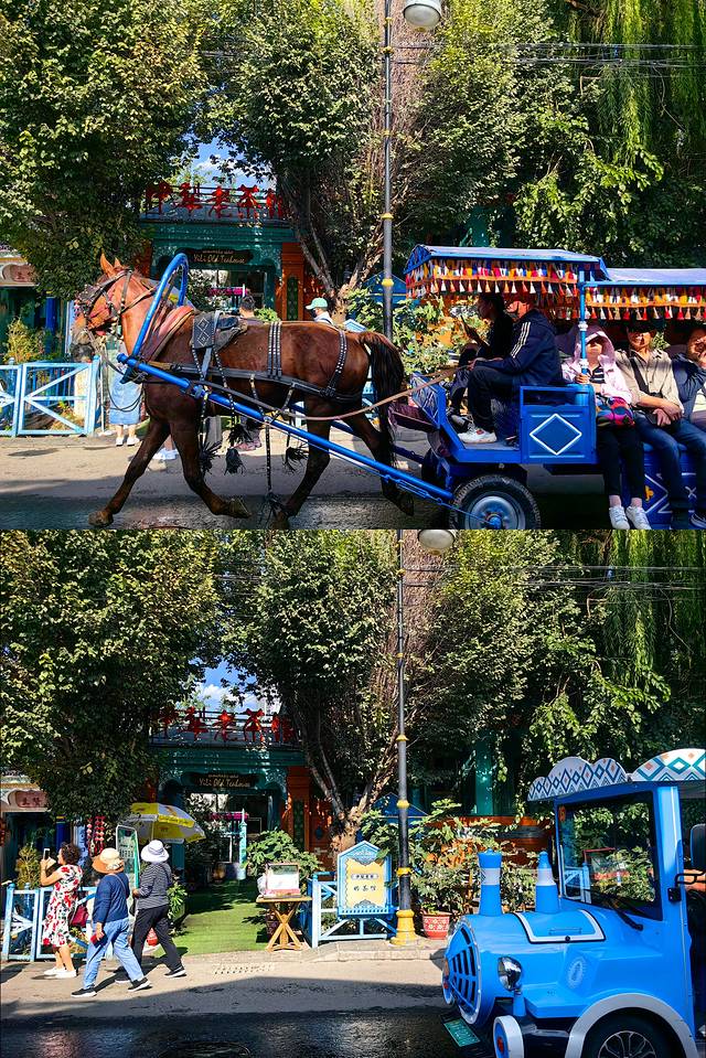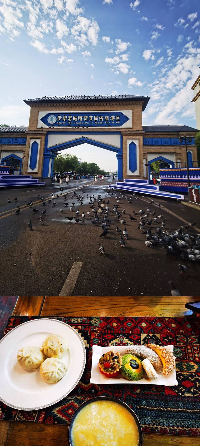 🏙️喀赞其被称为蓝色摩洛哥,伊犁必打卡地,但我俩觉得商业化严重,蓝色墙都是粉刷上去的,不能细看,不是太推荐吧,我们只是随便走了一下。但景区不远处的伊犁老茶馆吃的早餐:包子、奶茶尤其点心都很推荐,如果去到喀赞其,这家很可以去试试。