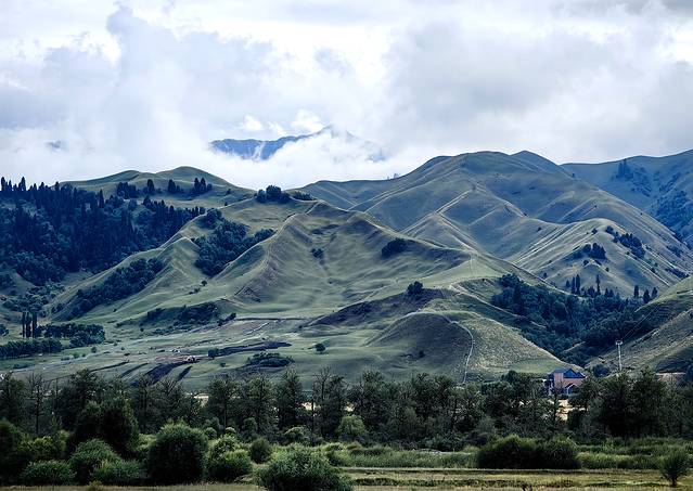 出景区往那拉提方向,导航走了一条乡道,风景很美车也少,可以拍出大片。