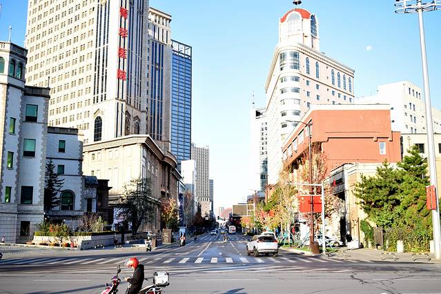 招手的方向便是中山路,路的尽头是沈阳站。以此方向延伸600公里,便是首都北京。