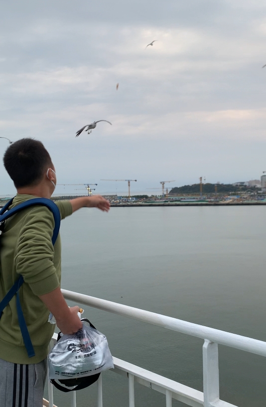 临下船,去甲板喂了下海鸥,挺有意思的。