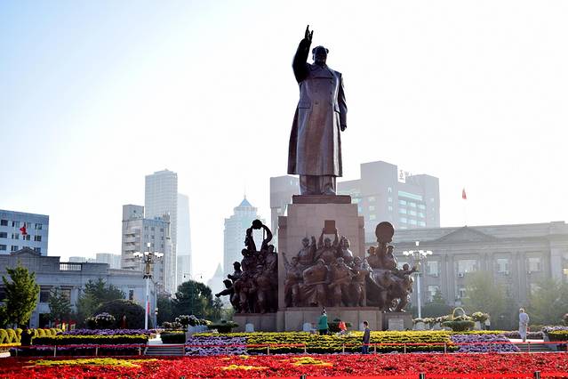 广场中央精美的雕像群,鲁迅美术学院的作品。