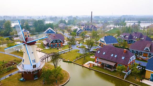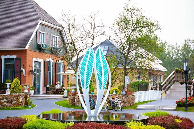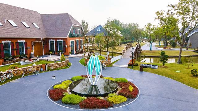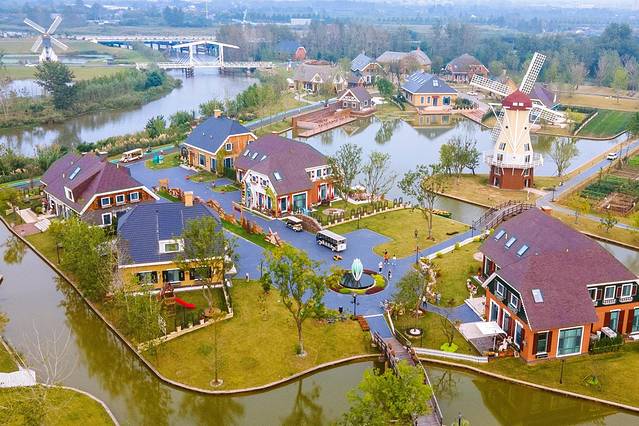如果说荷兰花海是通话世界,那这里则是一座梦幻的童话镇,这里是“大龙岛湖岸•若里度假村”,比邻荷兰花海景区,甚至可以乘船往返于荷兰花海与度假村。