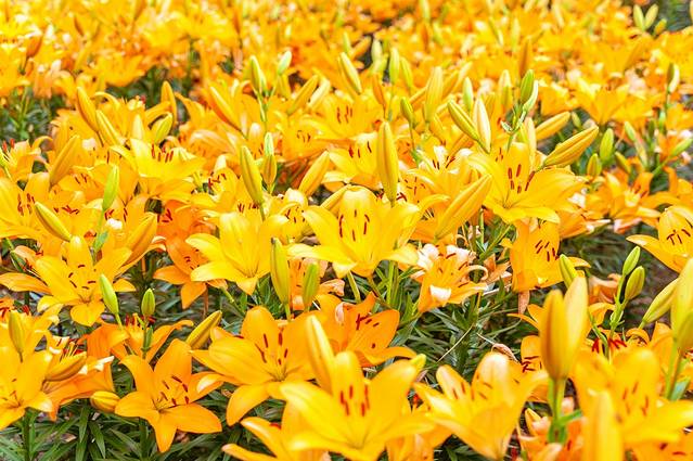 荷兰花海,坐落在盐城市大丰区新丰镇境内,她不仅是国家4A级旅游景区,还是全国连片种植郁金香面积最大、种类最多的景区,享有“中国郁金香第一花海”的美誉。其中,每年的3月份至5月份,数千万株郁金香竞相开放,风景美不胜收;而每年的9至10月份则是百合花盛放的季节,前几天就迎来了百合花文化月的开幕。