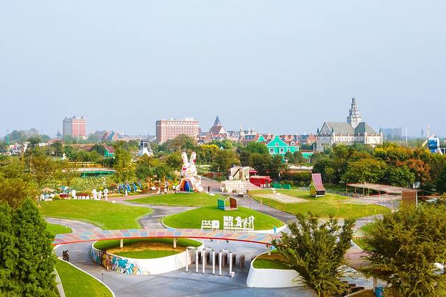 荷兰花海景区有三大部分组成,分别是荷兰风情街、千亩花海和《只有爱》戏剧幻城。恰逢中秋国庆小长假,与朋友来到荷兰花海。